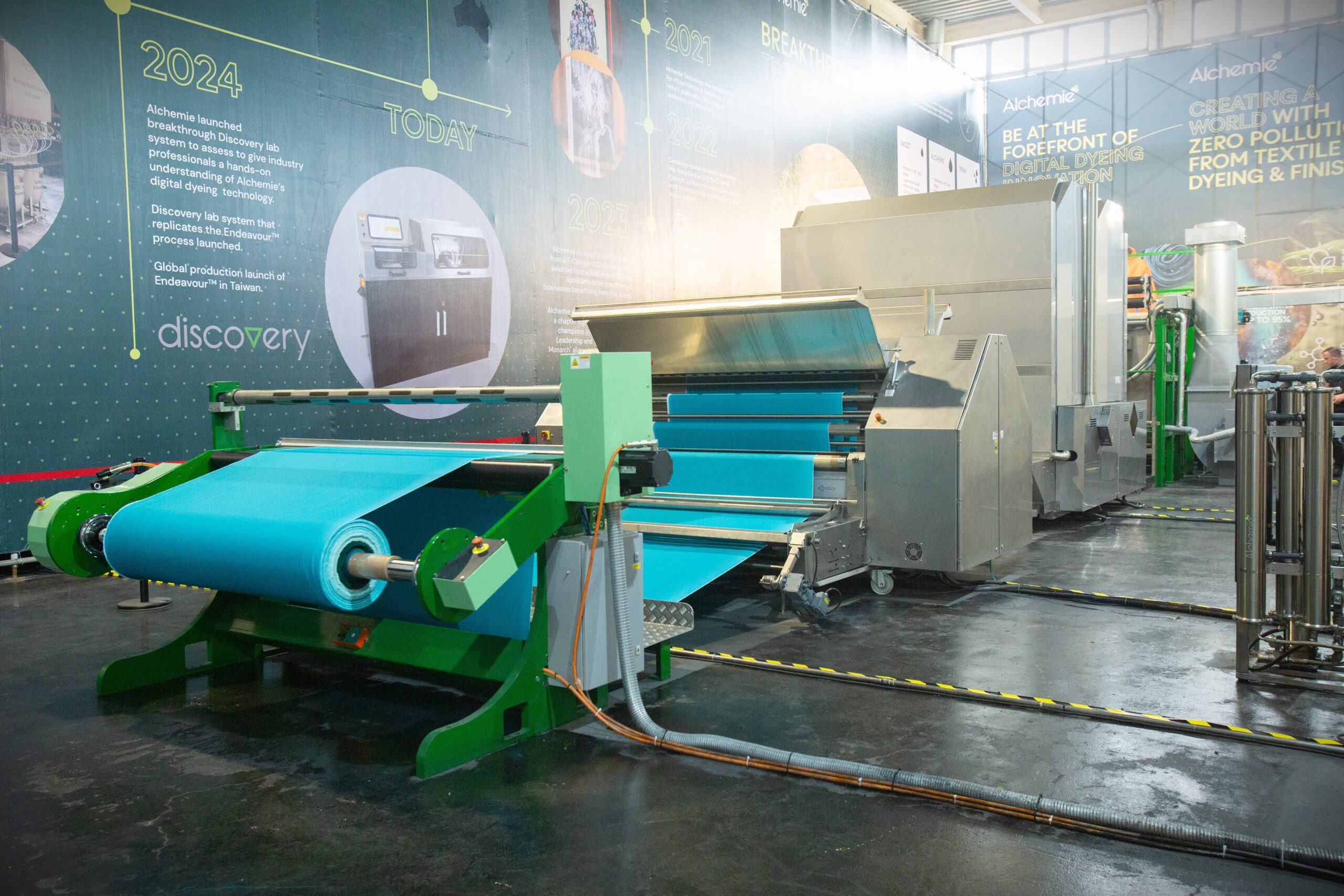 Alchemie Technology has developed clean-tech dyeing and finishing processes which are enabled by its unique digital fluid jetting technology. Alchemie’s digital manufacturing solutions for dyeing and finishing deliver reductions in operational costs and environmental impact: reducing wastewater, chemistry and energy consumption.